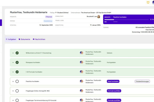 Die Beantragung eines US-Visums ist komplex und führt bei Antragstellenden häufig zu Fehlern. Wir unterstützen Ihre Kund:innen bei der Beantragung von US-Visa. Ziel ist es, den komplexen Antragsprozess transparent, sicher und digital abzubilden – von der Datenerfassung bis zur Visumsausstellung.