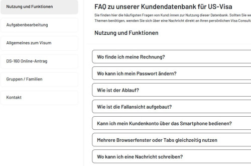 Für die Beantragung eines US-Visums verlangen die US-Behörden eine Vielzahl an Daten zur antragstellenden Person. Schrittweise können Antragsteller:innen hier nun alle benötigten Informationen eintragen und Dokumente wie Passfotos oder Reisepasskopien hochladen.